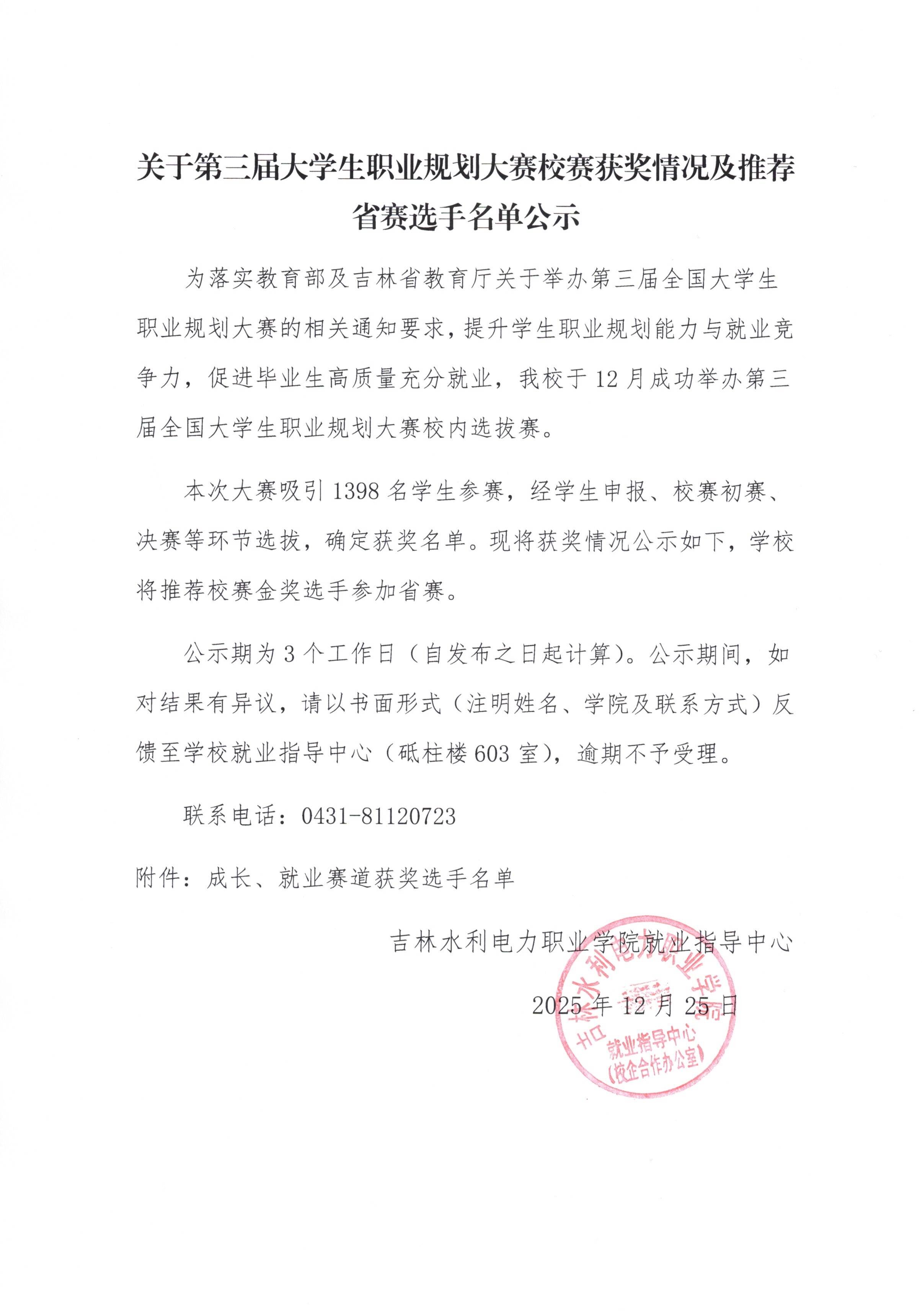 关于第三届大学生职业规划大赛校赛获奖情况及推荐省赛选手名单公示